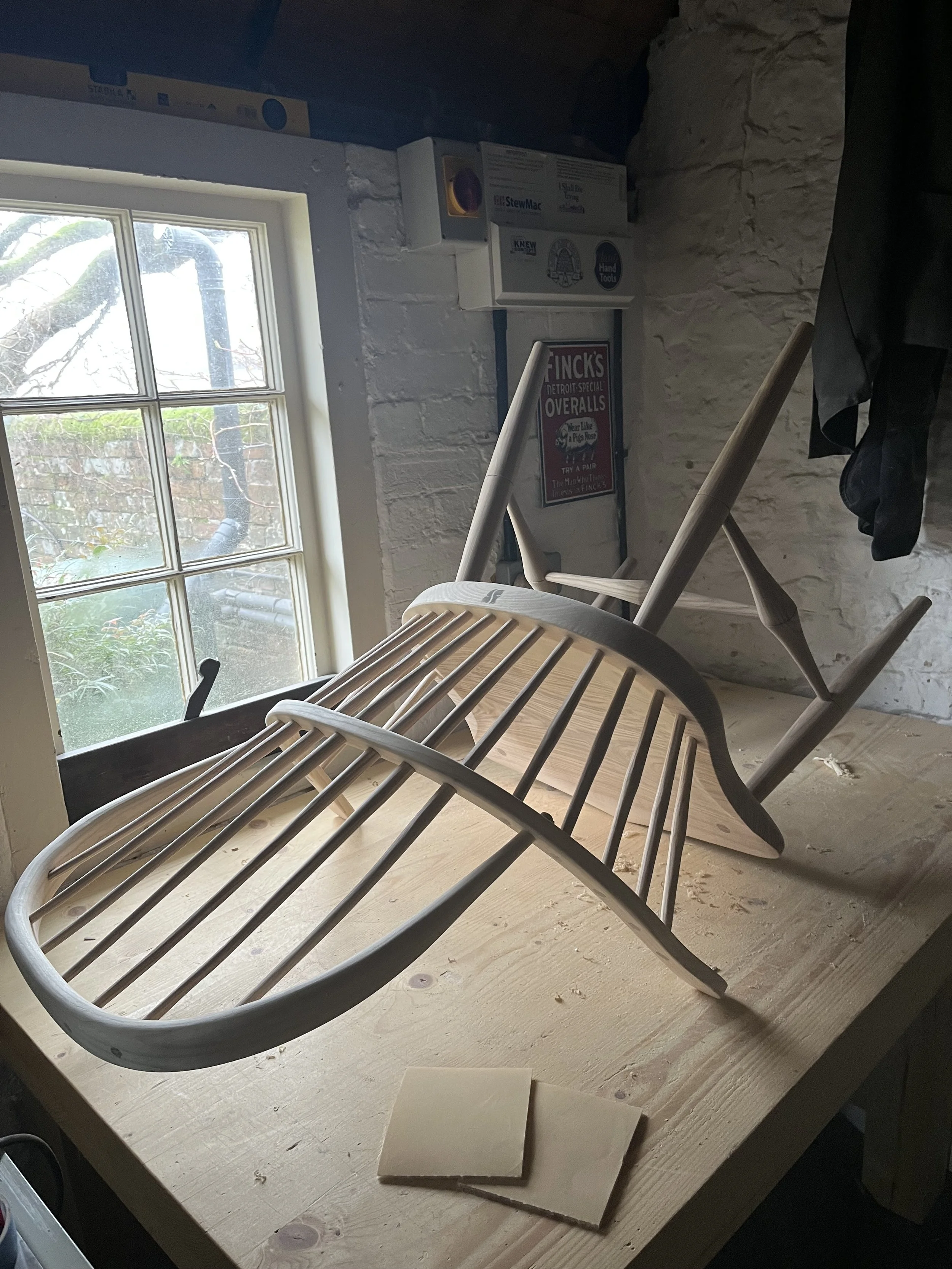 This is where my sense of touch becomes important. I’ll run my hands over every part of the chair, checking that it’s smooth. Once I’m happy then the chair is hoovered/dusted and off to the finishing room.