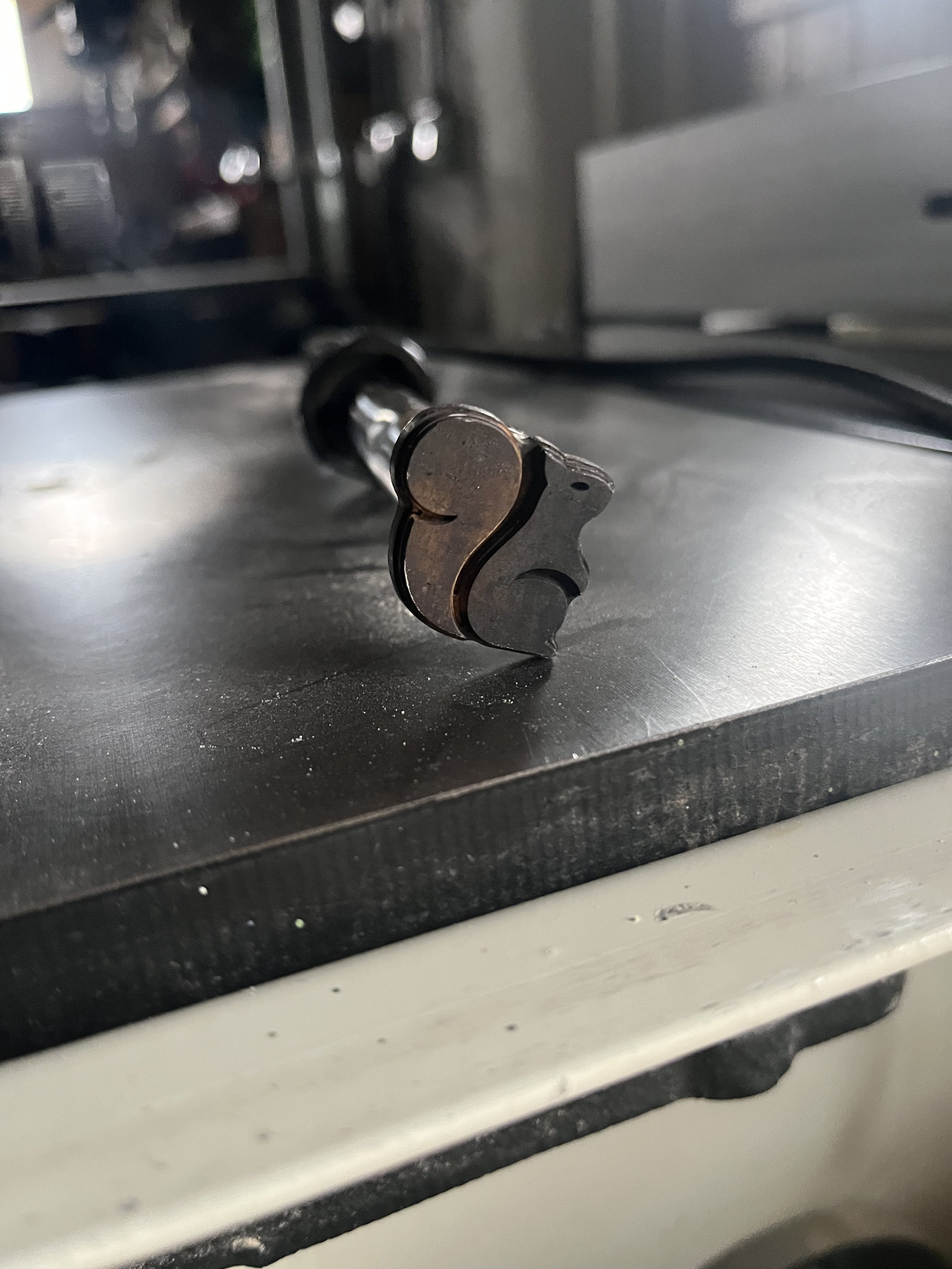 Every chair I make is branded - literally. For this I use a soldering iron with a metal logo attached, which gets heated up to red hot then carefully placed onto the rear of the seat. There’s a satisfying sizzle and the seat is marked with a squirrel.