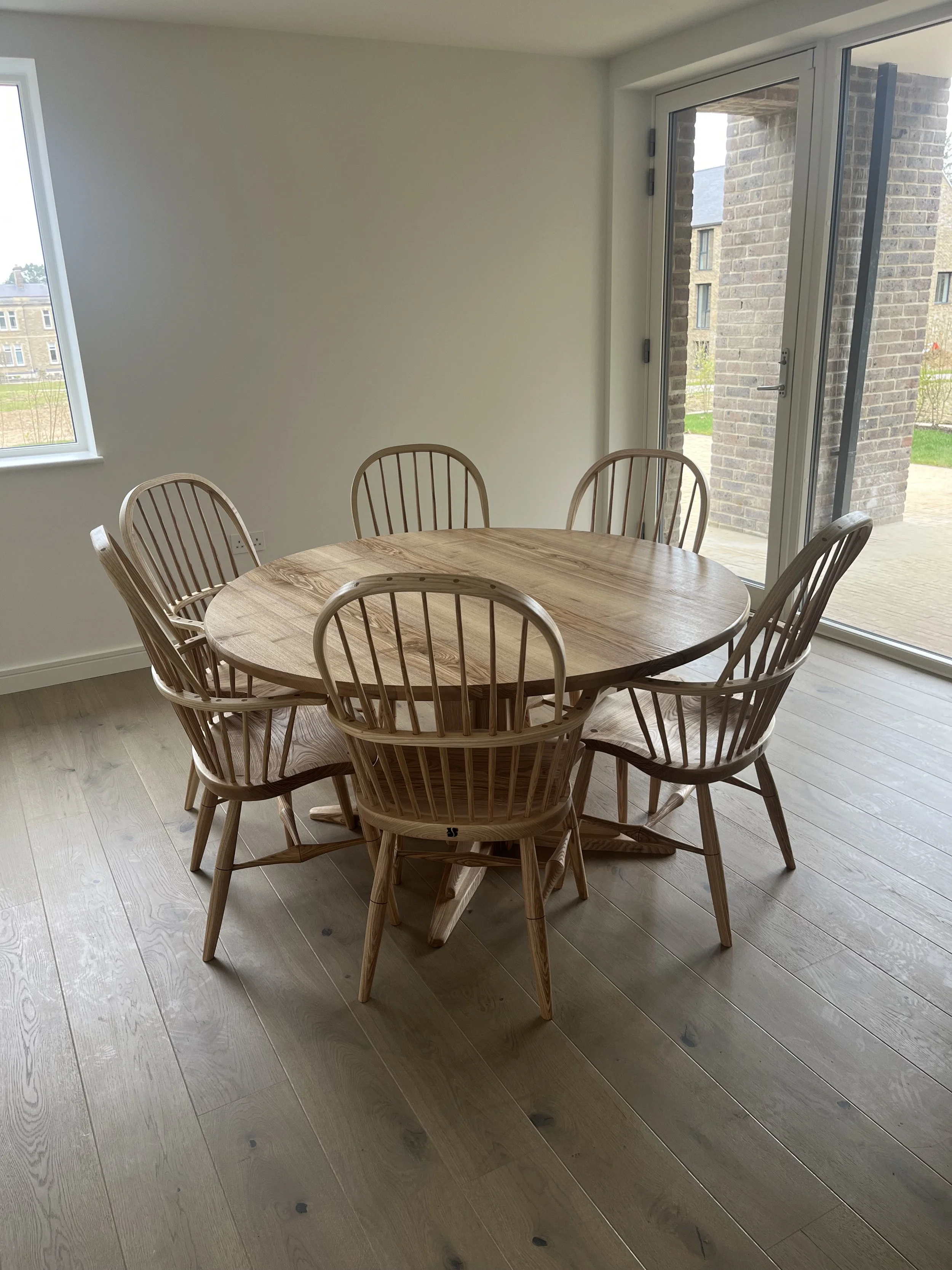 And there we have it, finished. The chair in the photographs was commissioned as a set of six, so I’ll leave you with a photo of them in their new home. I made the dining table too, but that’s another story…