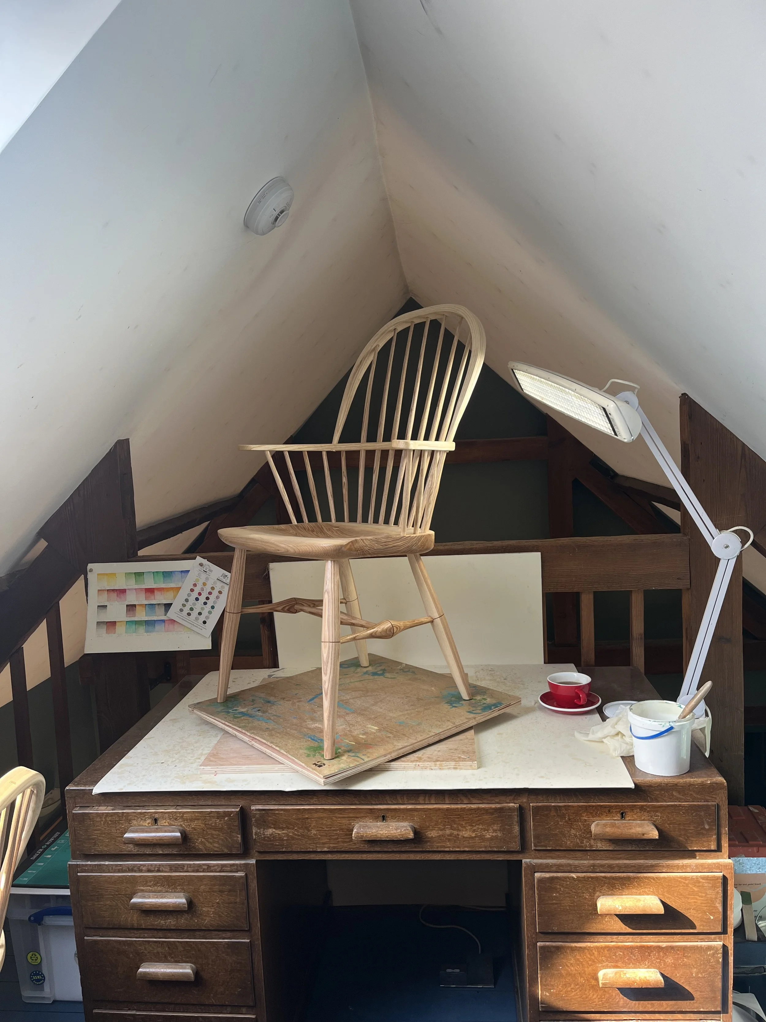 My house and workshop used to form part of a stableyard for the farmhouse next door. Those who have family history in the village tell me it was also a wheelwrights, so there have been people faffing about with spokeshaves in the close vicinity for a very long time. It also means I have a former hayloft, which is the perfect place to carry out finishing - dust free and well-ventilated.